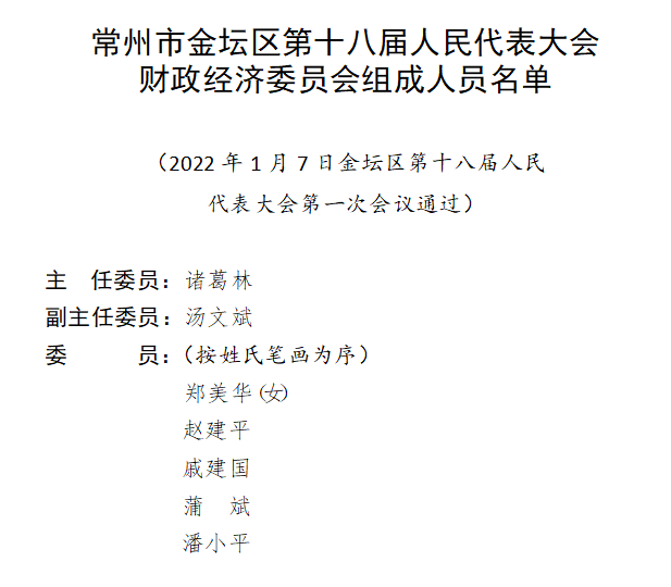 常州市金坛区第十八届人民代表大会财政经济委员会组成人员名单