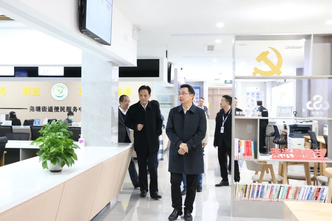 王海波先来到尧塘街道便民服务中心龙城红色驿站,了解了街道便民服务中心运行以来服务群众办事的整体情况。