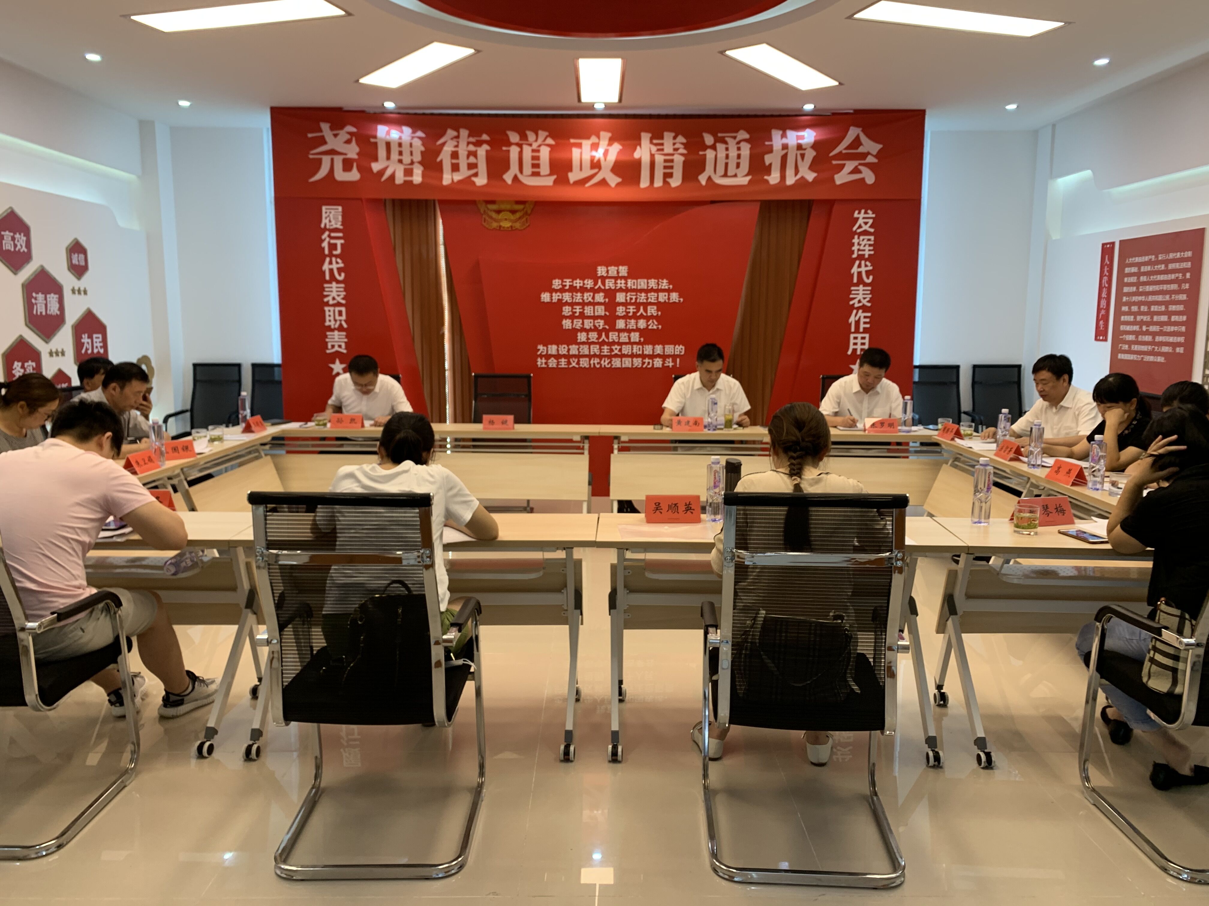 8月8日上午,尧塘街道召开2020年年中政情通报会,使人大代表们全面知情明政,广泛凝聚合力,扎实有效履职,着力助推街道年度目标任务圆满完成。街道区级人大代表参加会议。
