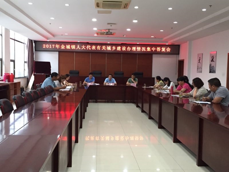 为了切实解决金城镇有关城乡建设方面的实际问题,推动人大代表建议的办理落到实处,2017年6月22日下午,金城镇召开了2017年人大代表有关城乡建设建议办理情况集中答复会。镇人大主席王涛、镇人大副主席陈丹锋、镇政府副镇长陈旭清以及相关人大代表参加了本次会议。