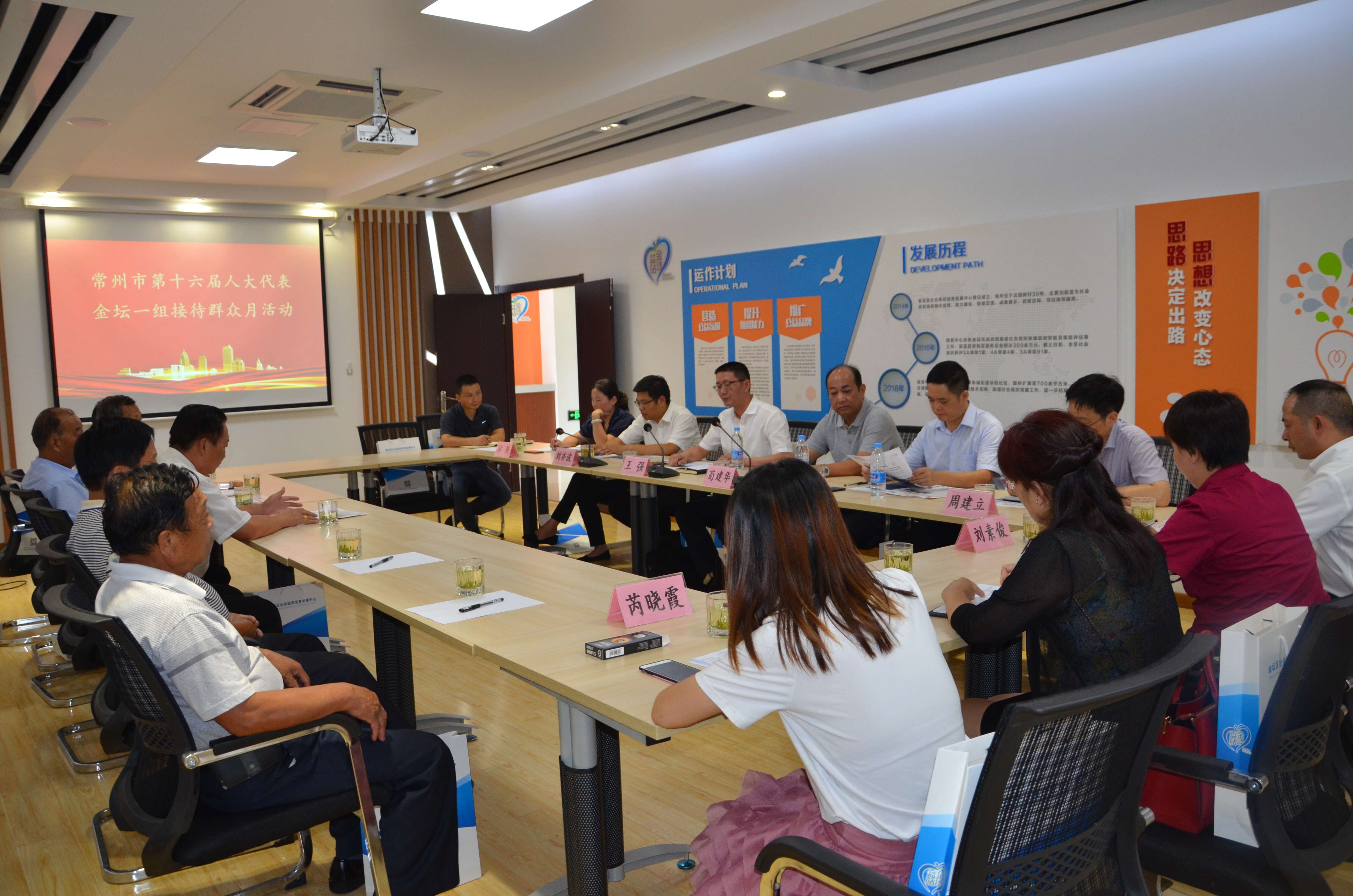 王强代表一行首先视察了华胜社区德法文化广场和同心楼,与现场居民亲切谈话、了解需求听取建议。随后在同心楼二楼进行了人大代表联系群众座谈,组长王强是检察院检察长,他首先向与会群众代表介绍了市十大民生实事项目推进情况,重点介绍了我区开展的项目建设进度。随后,代表们与参加座谈会的群众代表进行了互动交流,认真听取他们对我市经济发展、民生服务等方面的意见和建议。群众代表周正寿、丁照清、王金林等分别就基础设施、失地农民补贴保障、市政管理盲点等问题表达了群众的心声。