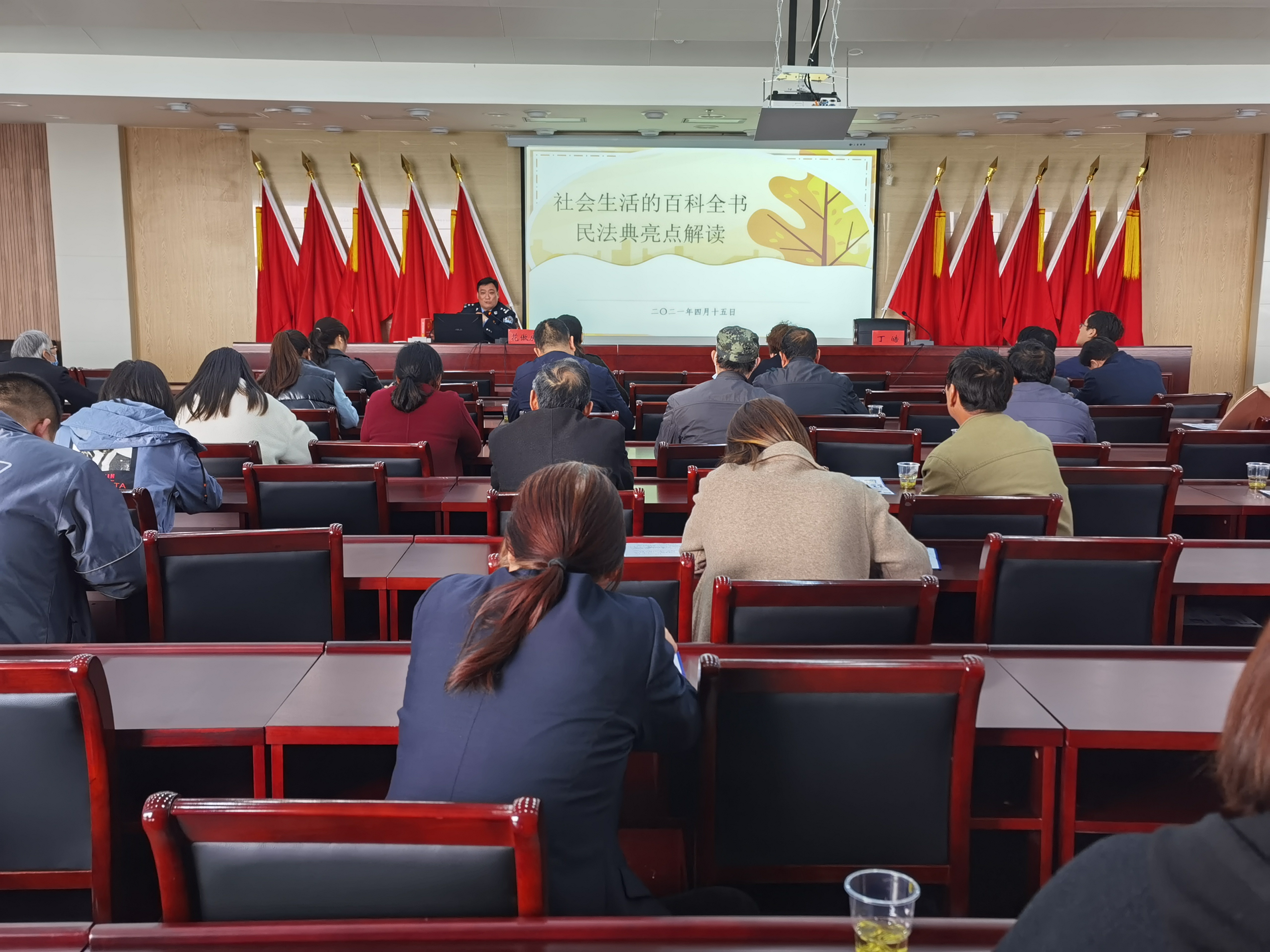 花敖庆同志围绕《防范电信网络诈骗》和《民法典》作了一场生动精彩的授课。花教以案说法,通过身边的人和事讲述了电信网络诈骗的种类和手段,教导大家如何辨别和防范网络电信诈骗。同时以分析社会热点问题为切入点,深入解读《民法典》,具有很强的理论性、指导性。花教的讲课深入浅出,内涵丰富,分析透彻,既有自己多年来的反诈骗工作的经验总结,又有深入基层调研后的理性思考;既有理论上的深刻感悟,也有实践中的升华提炼。