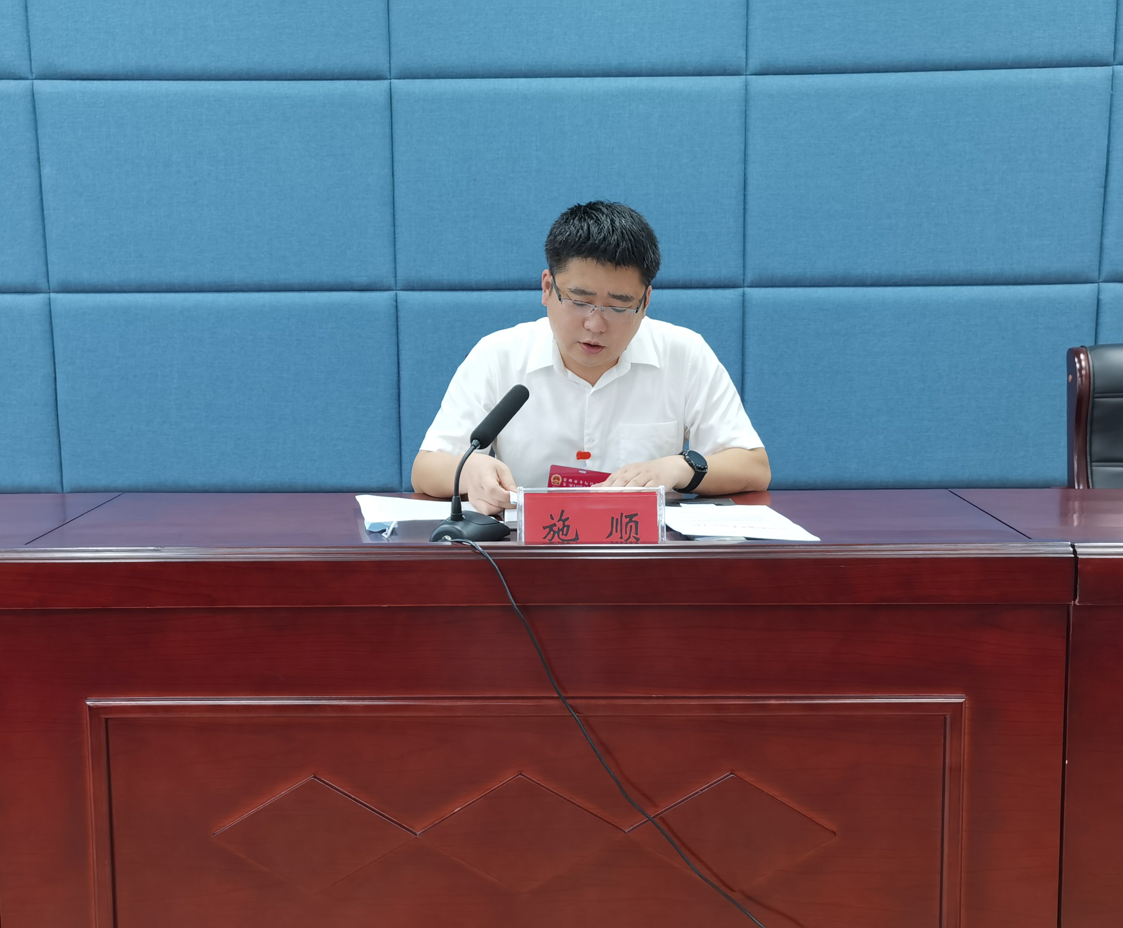 指前镇党委书记施顺同志向与会代表传达区第十四次党代会精神。